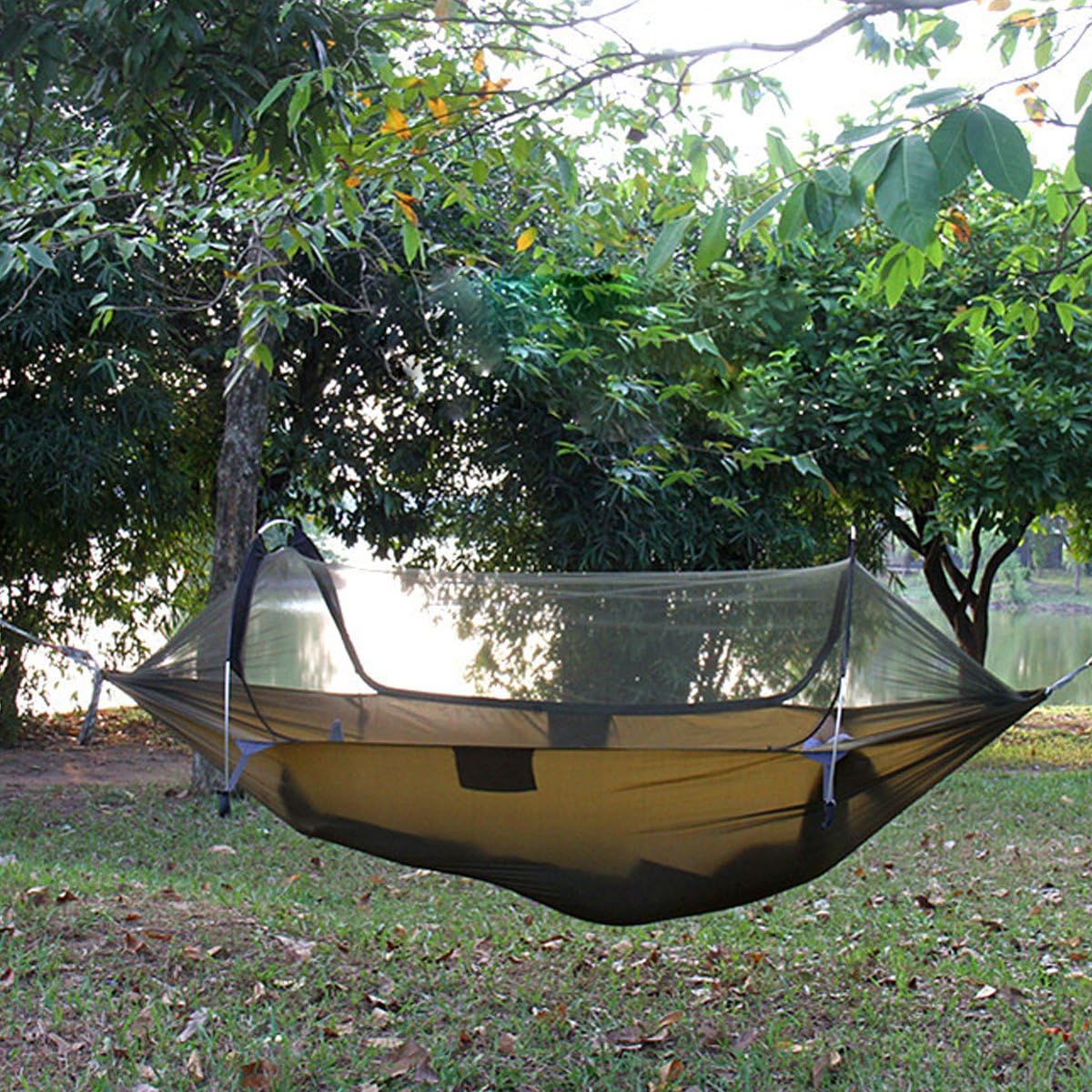 【Mosquito Net】: The hammock with bug net helps you sleep soundly, keep you away from mosquitos and insects. ( The mosquito net is optional ). Due to the tension of aluminum alloy poles, expanding the space of the hammock, there is no sense of urgency as the hammock when you use the mosquito net.
