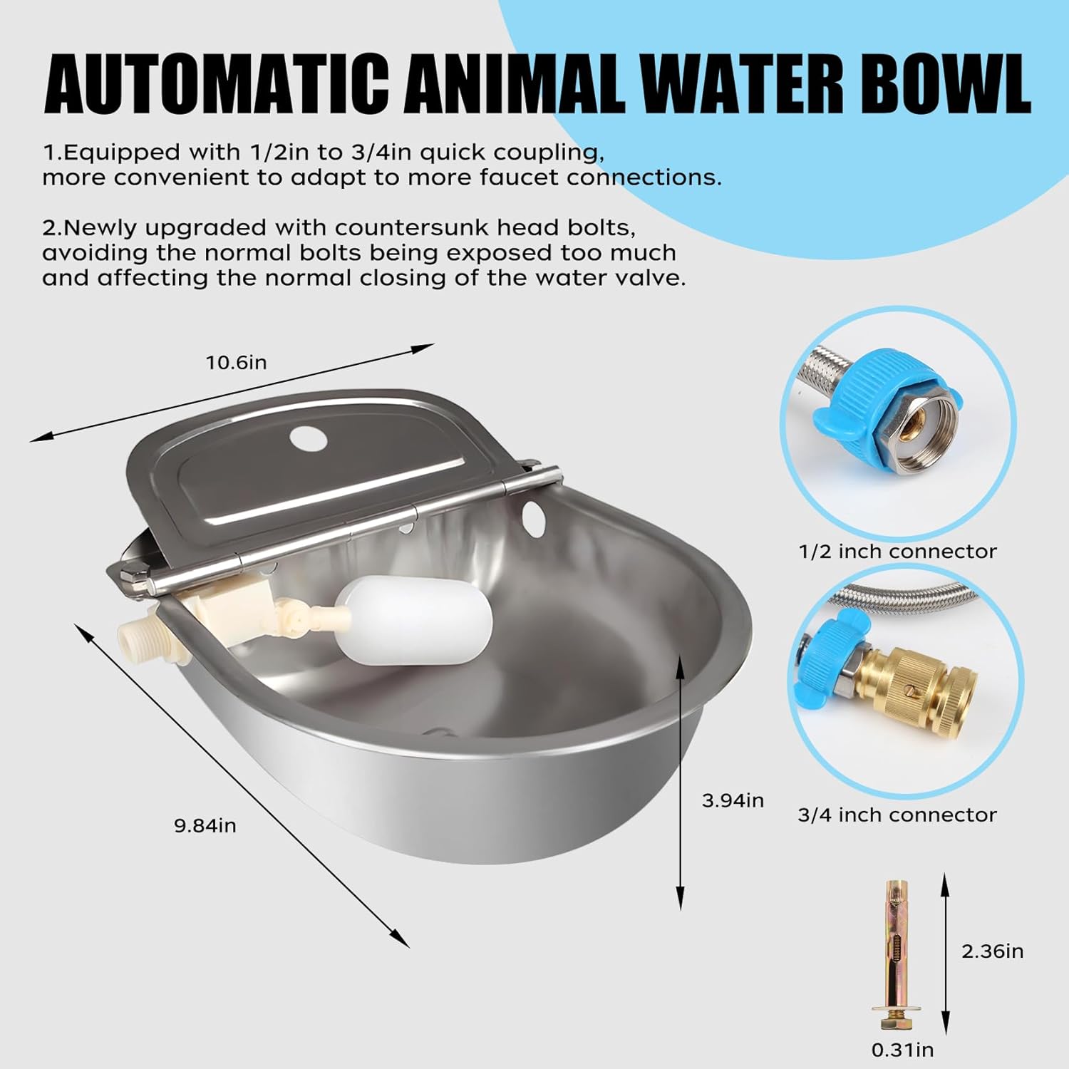 304 Stainless Steel Automatic Water Dispenser for Dogs & Livestock – Outdoor Dog Bowl, Horse & Goat Waterer