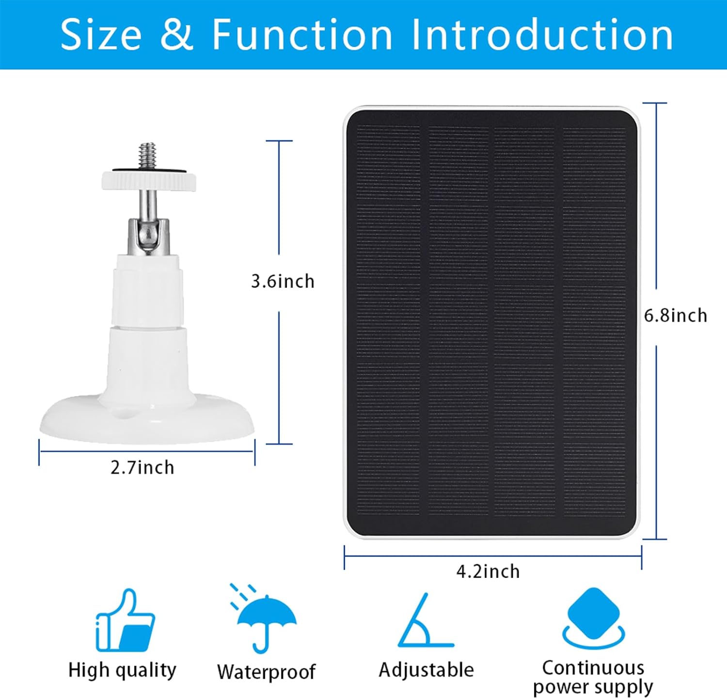 【Continuous Power Supply】: Solar panel is the ideal choice for outdoor wireless cameras to obtain uninterrupted and stable electricity from sunlight. 4W output power solar panel can also charge batteries that work normally at night