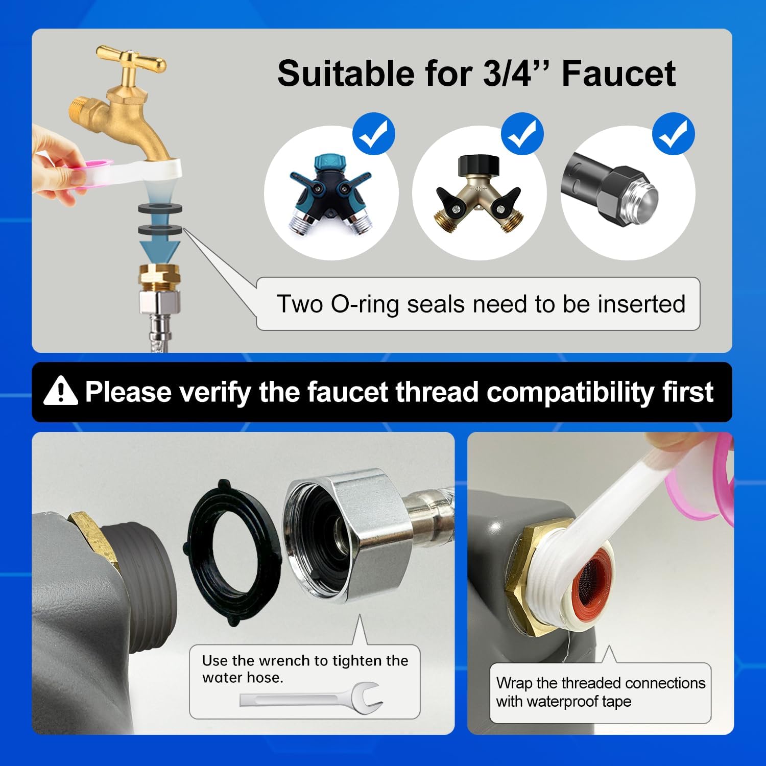 Heads up! 1. In areas with high water pressure, the water valve may not function properly. If this happens, please contact our customer service for a return or replacement. 2. Leaking at the hose joint? Insert two “O” rings into the copper fitting to seal it tight. Still leaking? It might be a thread compatibility issue. Don’t hesitate to contact us—we’re here to make things right!