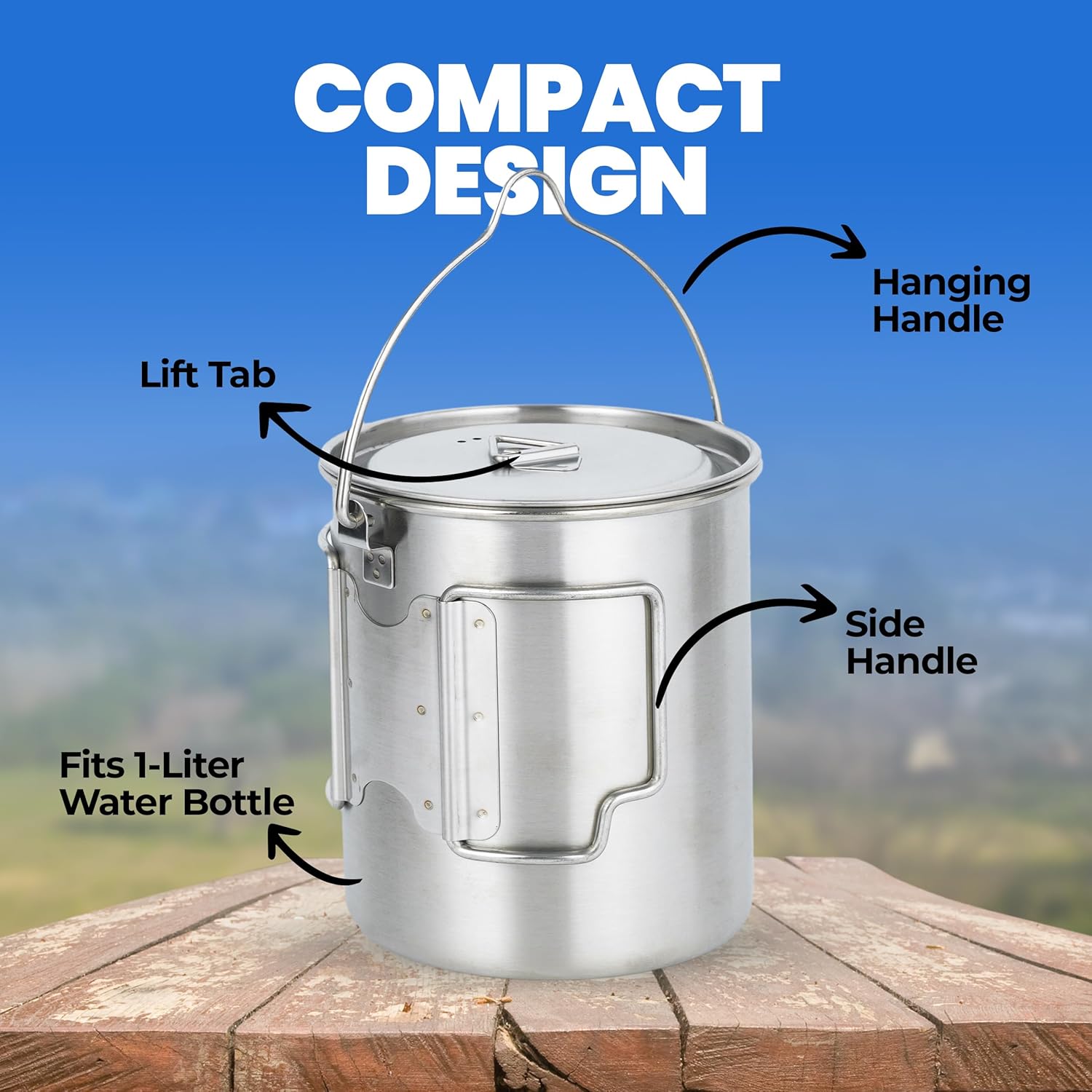 LIGHTWEIGHT AND DURABLE: This camping cook set is light and compact with the total weight of 9 oz and is made of durable 304 stainless steel. The camping pot can be directly applied to heat and is perfect addition to your camp cooking equipment.