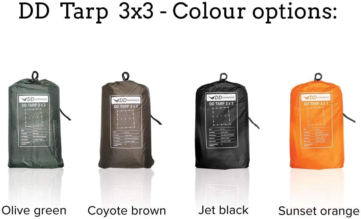 Included for quick set-up: DD Tarp 3×3 , 4x pegs & guy lines, stuff sack