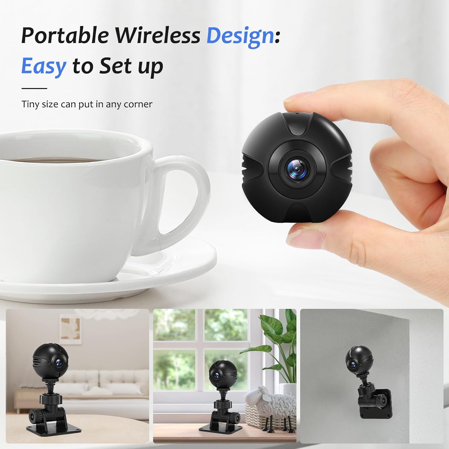 【High Definition and Infrared Night Vision】This mini camera provides high-quality video and images with a 360-degree manual rotation view. Whether it’s day or night, the infrared night vision ensures clear visibility at all times. Featuring a built-in battery, this camera supports flexible installation and mobility. Whether used indoors or outdoors, the image remains clear