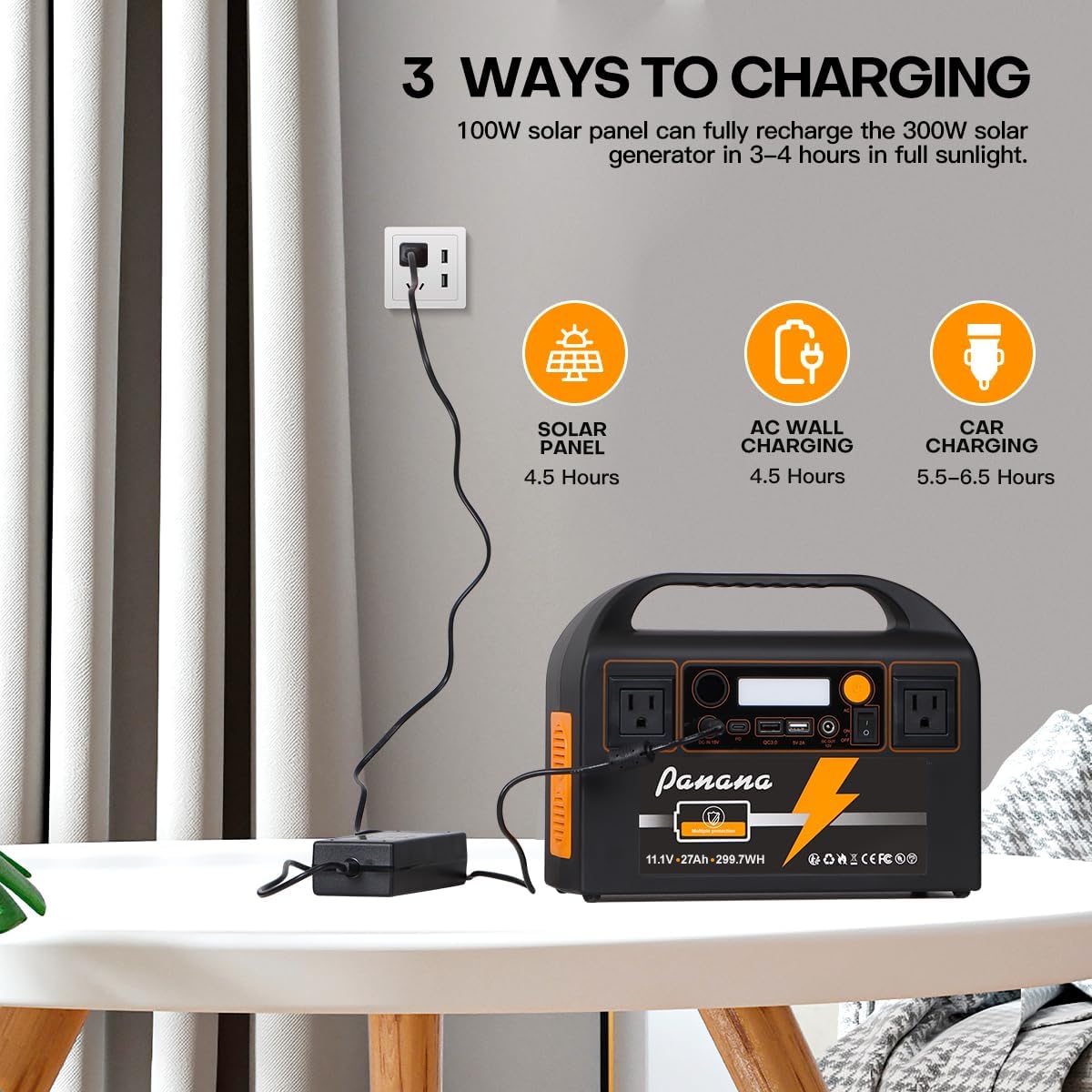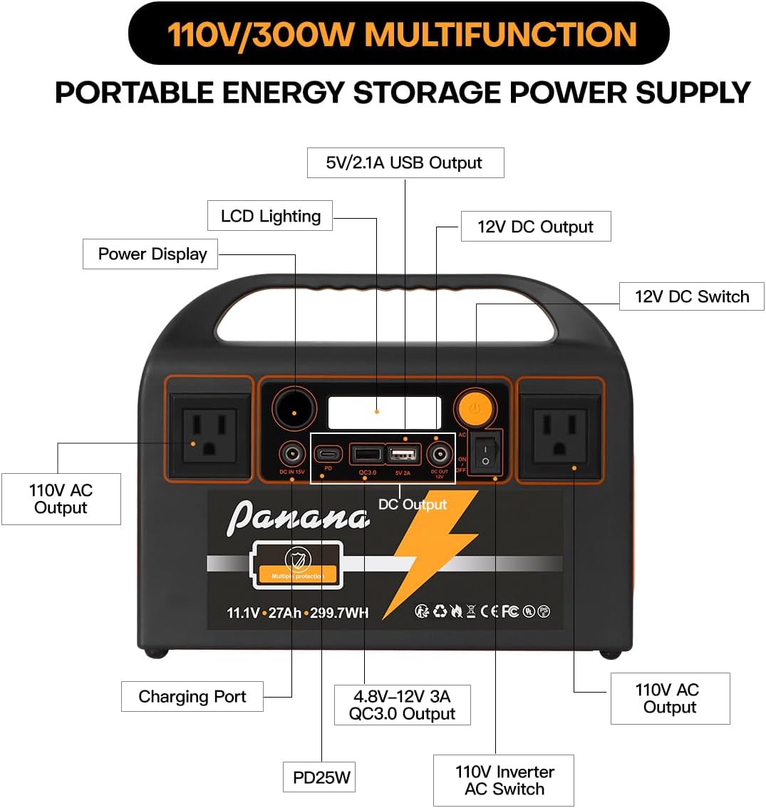 Panana 300W Portable Power Station, Lithium Battery Electronic Solar Generator Backup Power Supply for Camping Outdoor Adventure Explorer