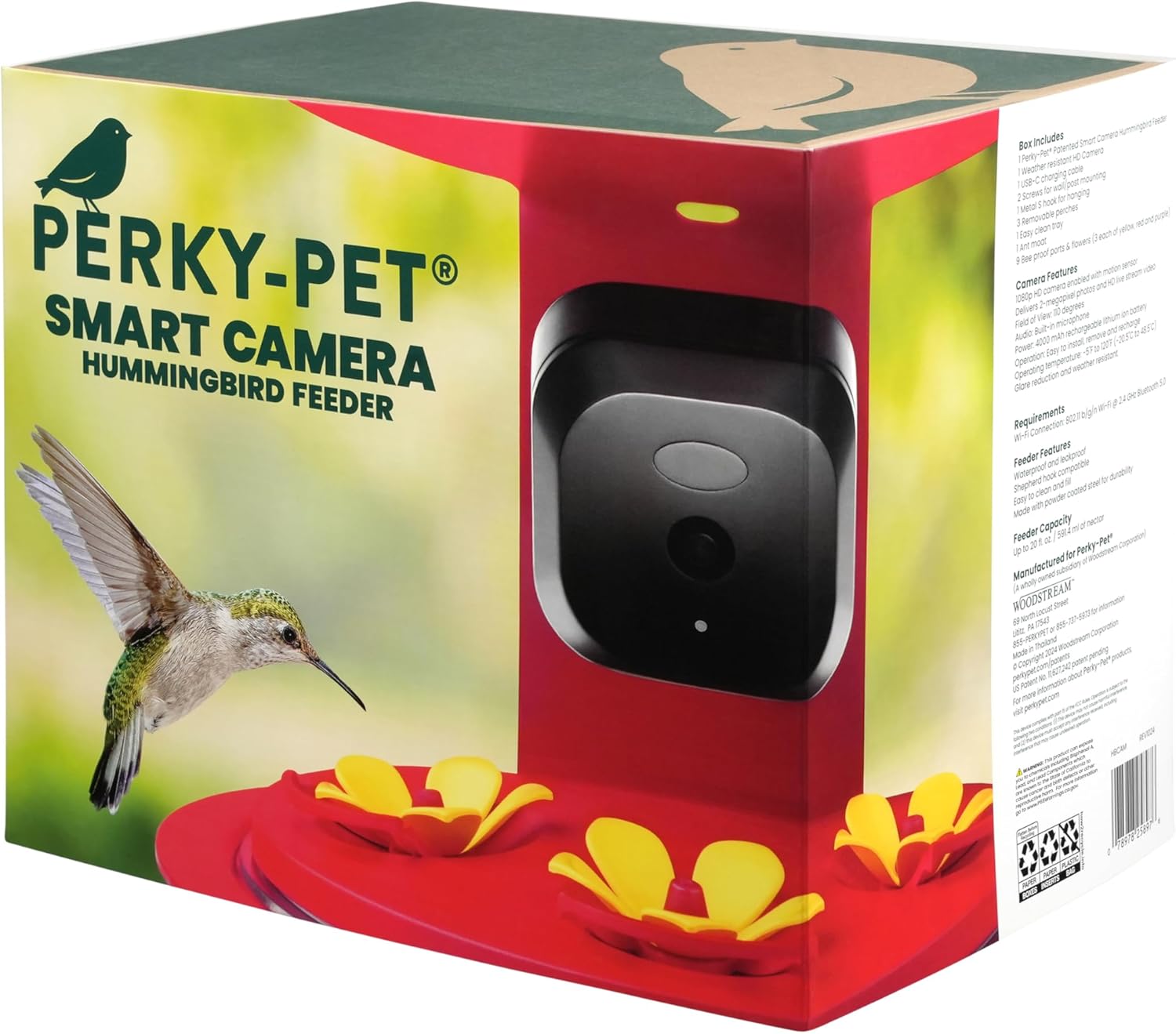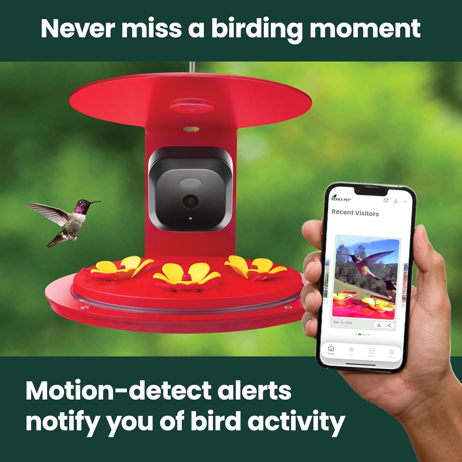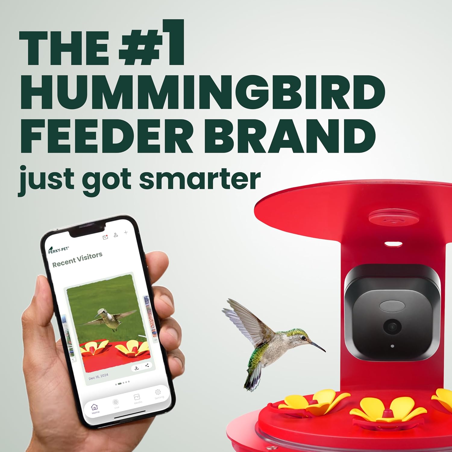 Perky-Pet Smart Bird Feeder with Camera for Hummingbirds – 20 oz Nectar Capacity, Motion-Activated HD Bird Cam, 2.4 GHz Wi-Fi, Battery Powered
