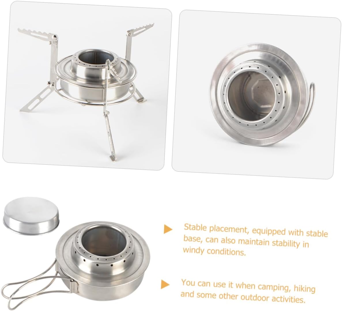 Metal small stove:compact size, convenient storage and carry with you, can adjust the flame, and it is portable to carry it with you,alcohol stove