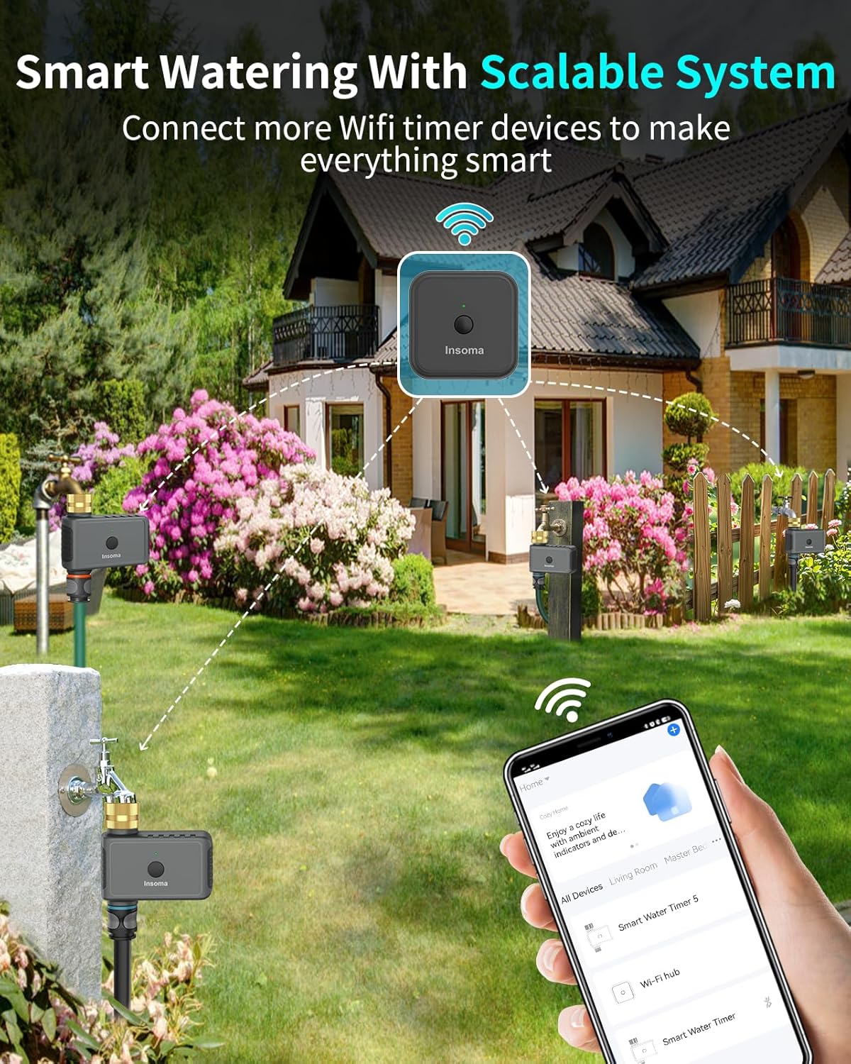 【Expand Irrigation System】With just one WiFi hub, you can expand up to 32 WiFi timers to build a smart irrigation system for your garden. In addition, you can add family members to the app to share home irrigation management