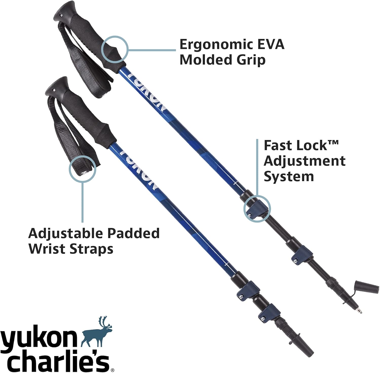 Yukon Charlie’s Sherpa Trekking Poles, Twist Lock Adjustment System, Hiking Poles and Snow Baskets, Multiple Styles & Sizes